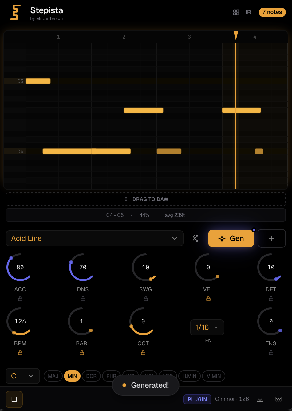 Drag MIDI directly into your DAW or download as .mid.